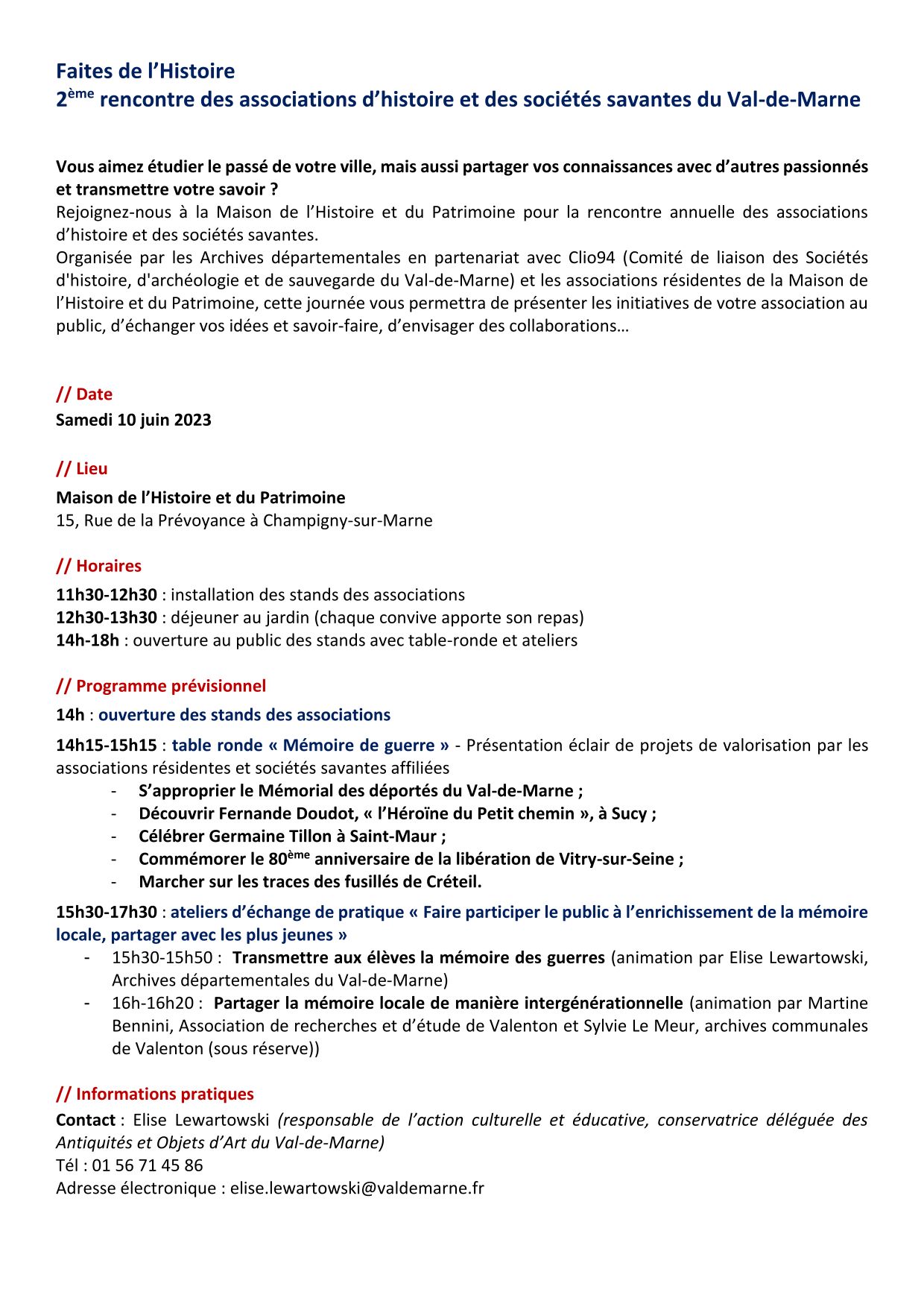 2ème rencontre des associations d'histoire et des sociétés savantes du Val-de-Marne