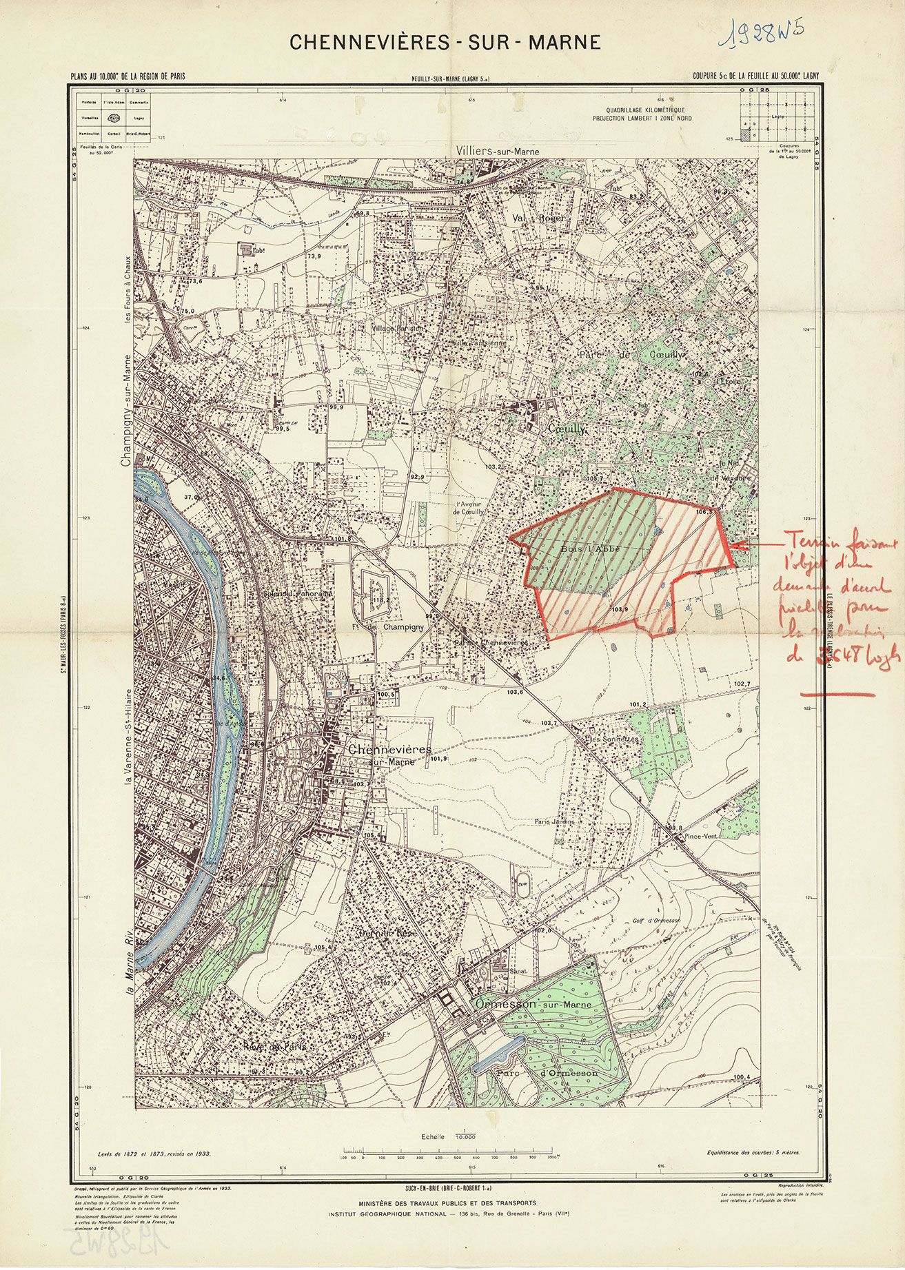 Carte annotée. 67 x 48 cm (Archives départementales du Val-de-Marne, 1928W 5).