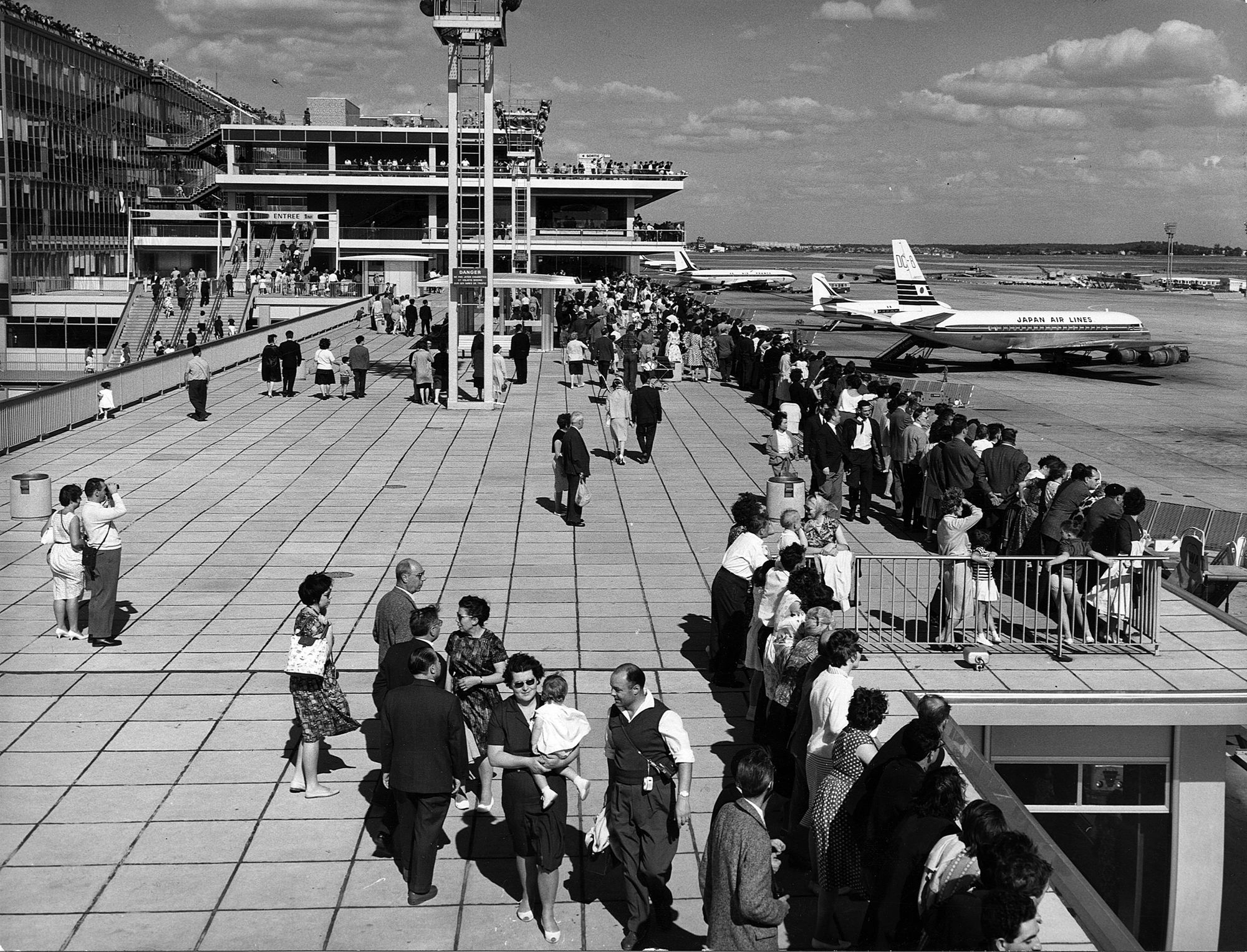Inauguré le 24 février 1961, l’aéroport d’Orly est une des fiertés de la France gaullienne. Ses pistes, parties prenantes du grand dessein économique des Trente Glorieuses, qui accueillent la Caravelle et le Mirage, illustrent l’insertion des trafics dans l’activité économique de la région, mais aussi dans le système mondial. Elles favorisent notamment la convergence de produits alimentaires du monde entier vers le ventre de Paris transféré des Halles au MIN de Rungis en 1969.