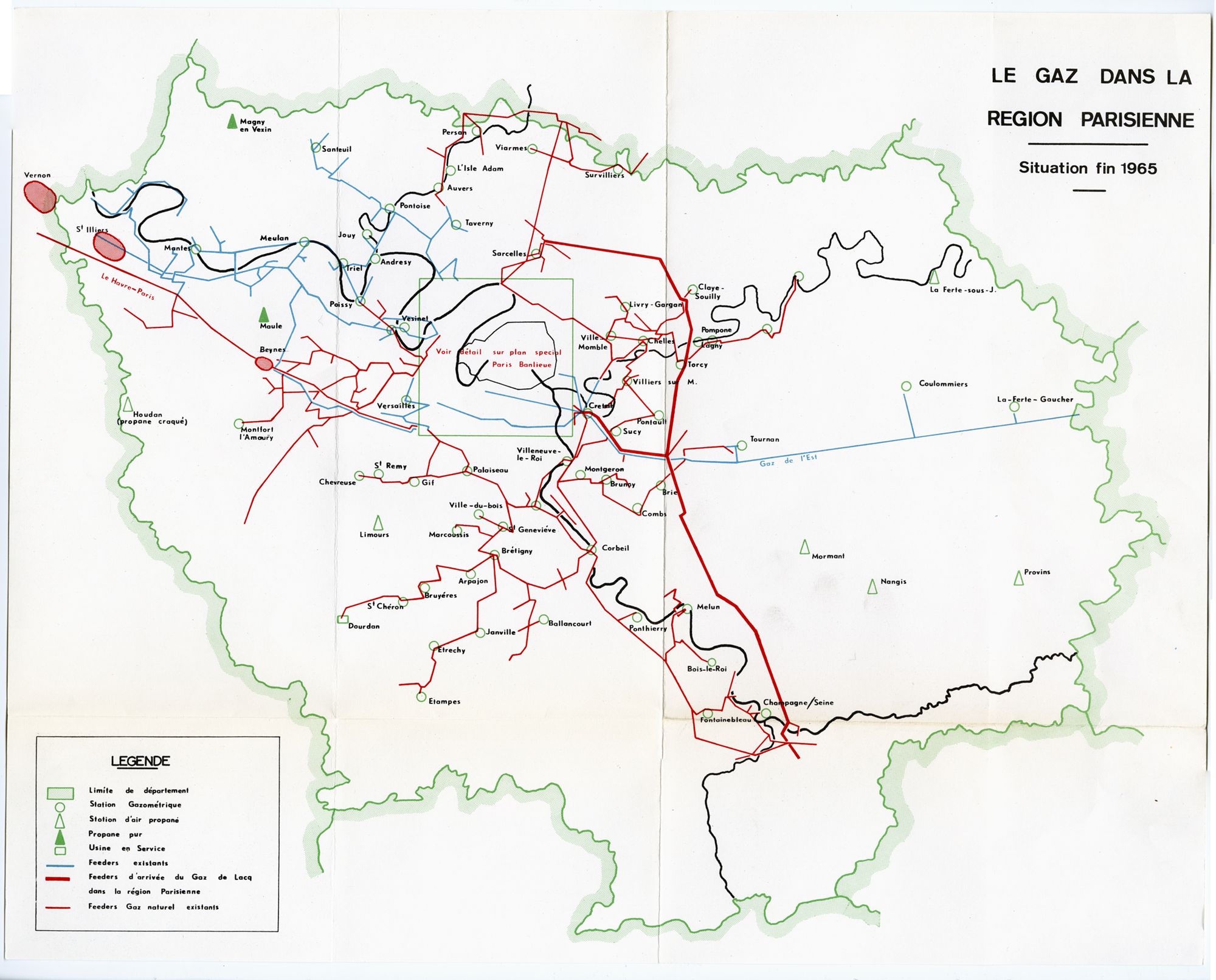 Fléau val-de-marnais, la pollution atmosphérique est encadrée par la loi de 1961, après de nombreux arrêtés et ordonnances communaux et la loi Morizet sur les fumées industrielles (1932). Mesurée scientifiquement à partir des années 1950, elle est attribuée à la consommation d’énergie par les centrales thermiques et établissements industriels : à Vitry-sur-Seine, ville industrielle, on mesure en 1950 1600 g de poussière/m²/an dans l’air contre 13 g dans le centre de Paris. Facteur de pollution nouvellement dénoncé, les chauffages domestiques sont en partie responsables des fortes teneurs journalières en anhydride sulfureux et fumées mesurées à Saint-Maur en 1964 par l’Association pour la prévention de la pollution atmosphérique. L’expansion du trafic automobile y contribue également en rejetant du monoxyde de carbone et du plomb dans l’air. 1,2 million de voitures circulent en région parisienne en 1960.