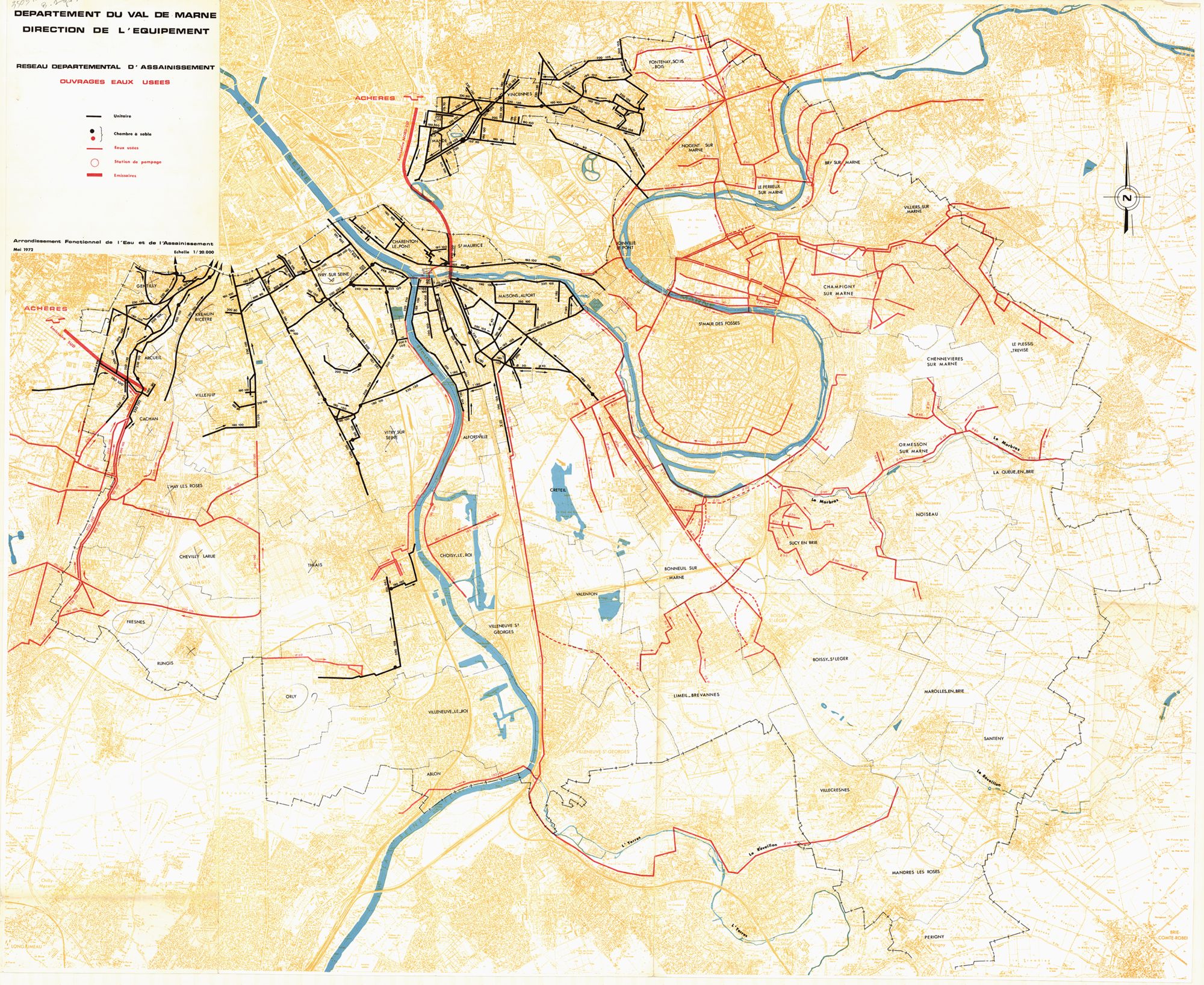 Le Val-de-Marne est raccordé au réseau de collecte et d’épuration de la région parisienne en 1969, mais sur les eaux usées collectées, seulement 15 % sont traitées, 14 % sont déversées dans les champs d’épandage pour la fertilisation des sols, le reste, soit 71 %, est déversé directement dans les cours d’eau.