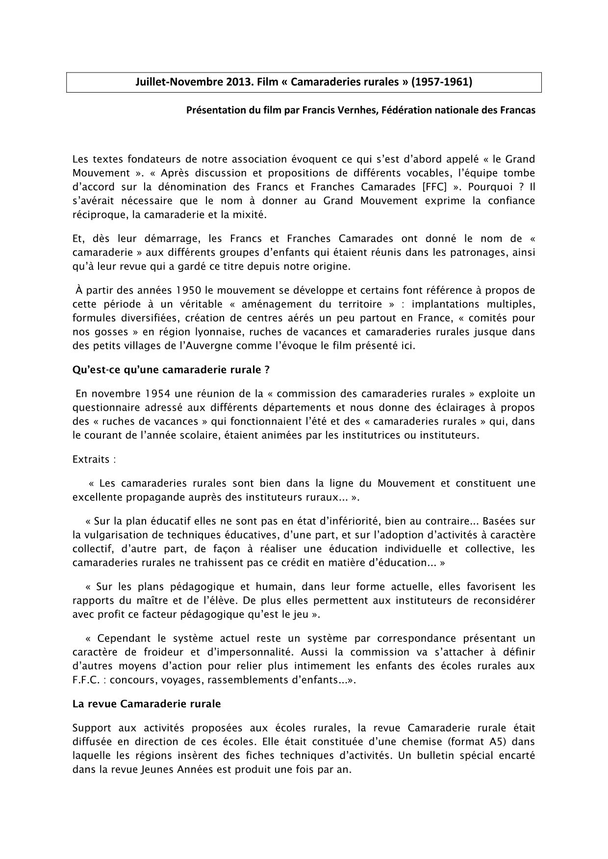2014 - "Camaraderie rurale" par les Francas (1957-1961)