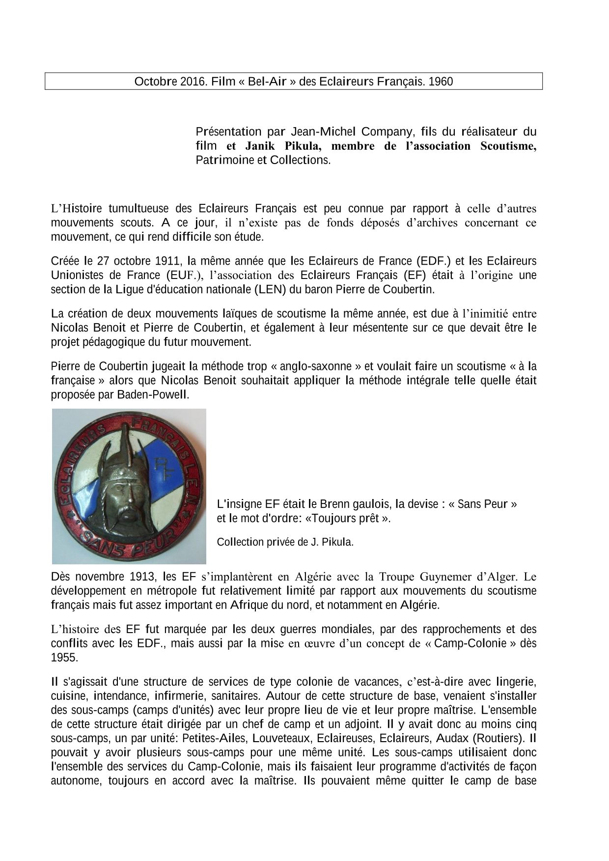 2016 - "Bel-Air" par les Eclaireurs Français (1960)