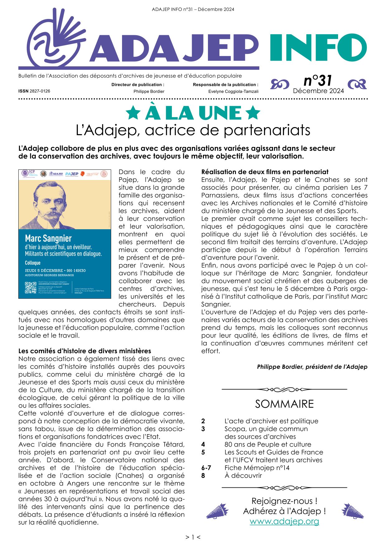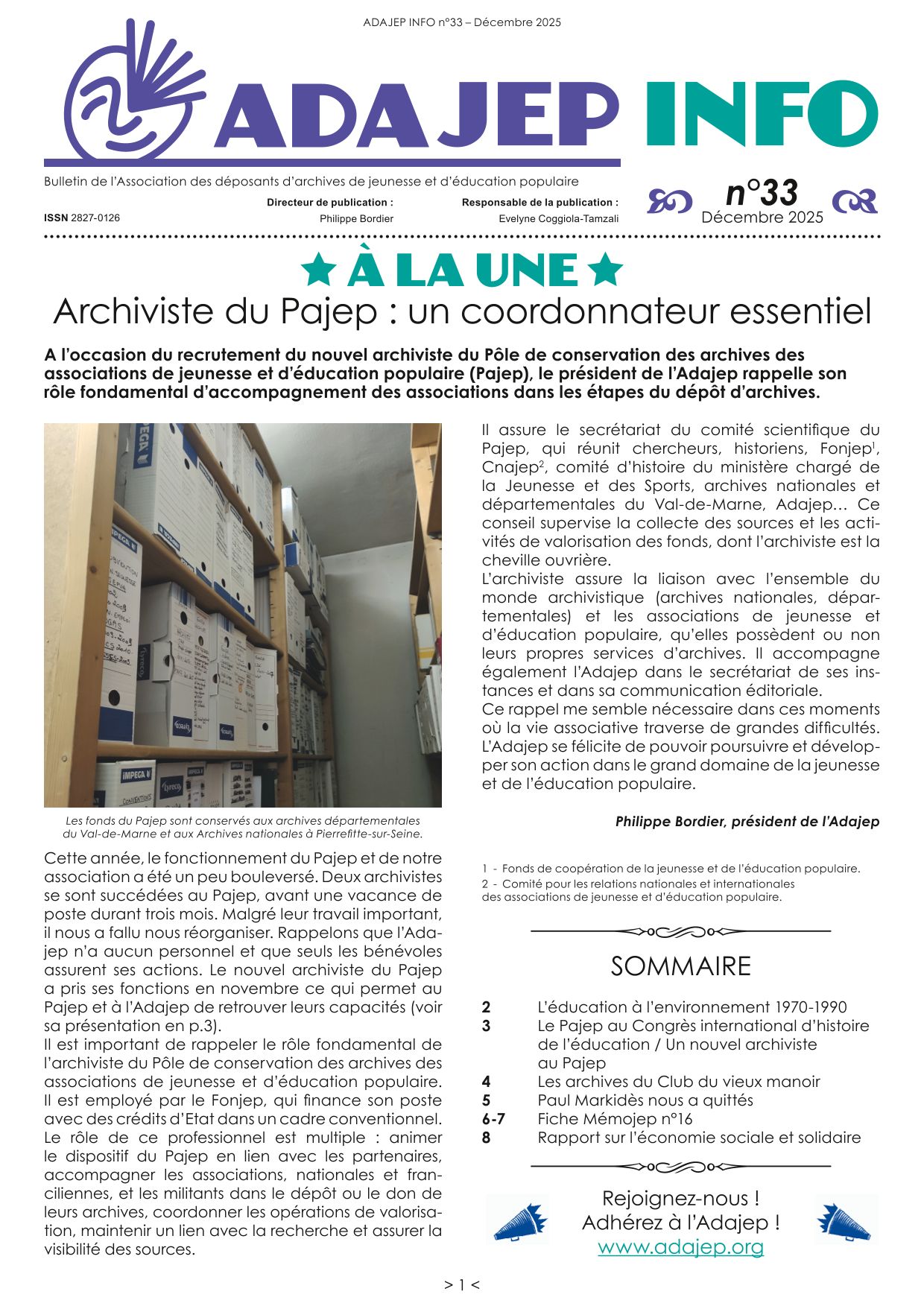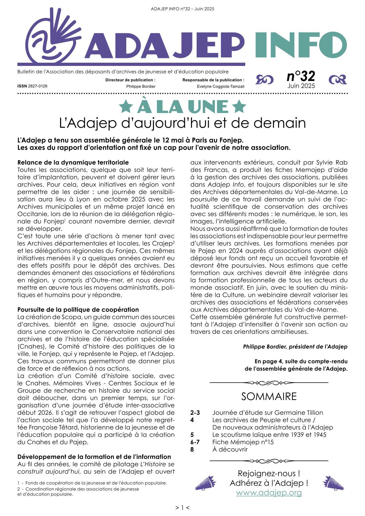 L'ADAJEP est l'Association des déposants d'archives de jeunesse et d'éducation populaire.