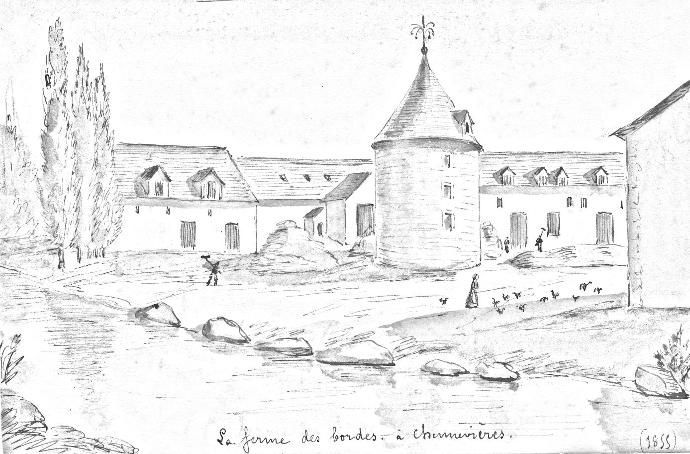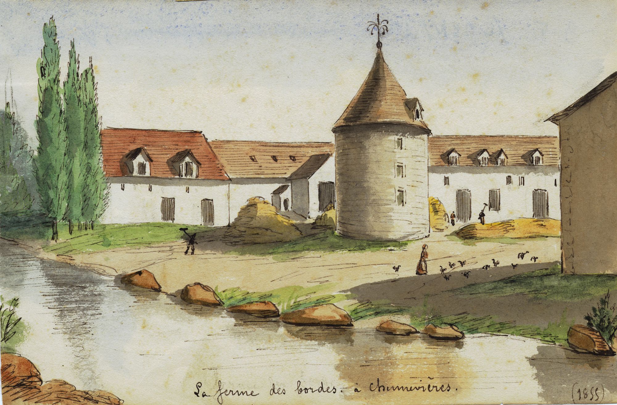 La ferme des bordes à Chennevières-sur-Marne. Aquarelle d'Albert Capaul. [1855] Archives départementales du Val-de-Marne, 9FI Chennevières 11.
