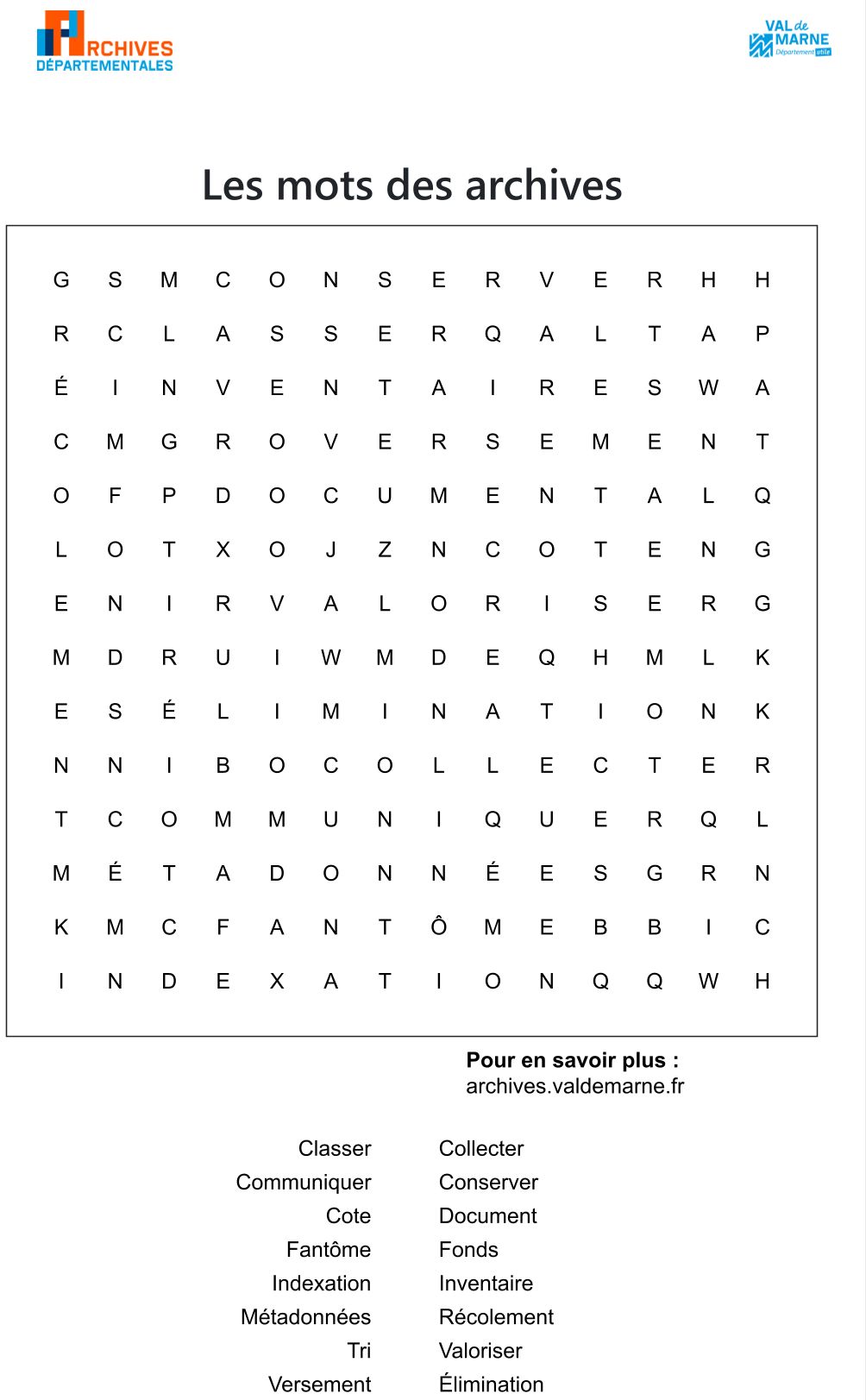 Envie de jouer avec les mots et l'histoire du Val-de-Marne : essayer nos mots mêlés !