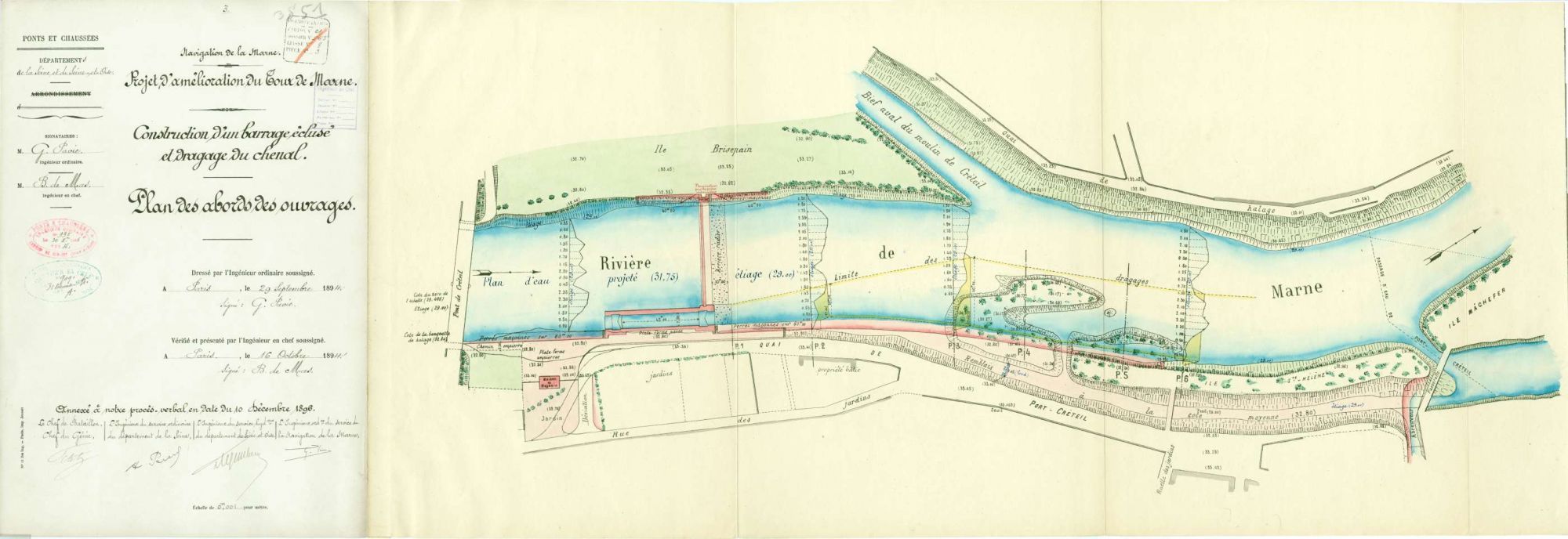 Plan de l’aménagement du barrage éclusé de Créteil 1894