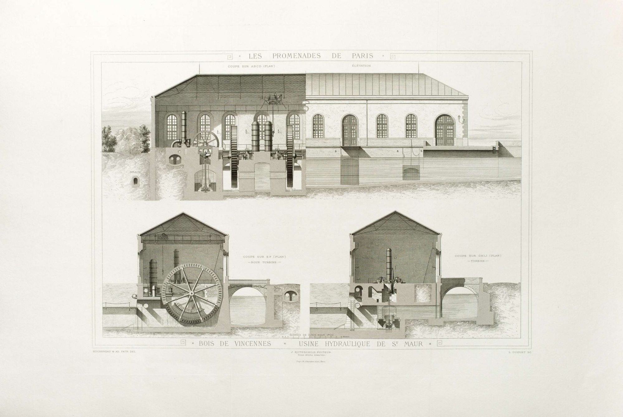 Située à la limite entre les communes de Saint-Maur et Saint-Maurice, sur l’emplacement des grands moulins de Saint-Maur acquis par la ville de Paris en 1864, et construite d’après le projet de Louis-Dominique Girard de 1863, l’usine hydraulique de Saint-Maur pompe et élève l’eau de la Marne jusqu’aux réservoirs du bois de Vincennes, où elle est utilisée pour l’entretien du bois, et de Ménilmontant, où elle sert à l’approvisionnement de Paris en eau potable.