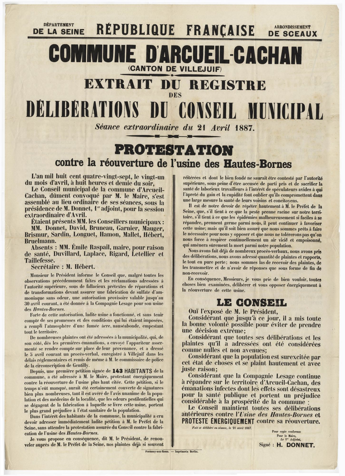 Découvrez, mise en voix, un extrait du registre de délibération du conseil municipal d'Arcueil-Cachan le 21 avril 1887. (Archives départementales du Val-de-Marne, 69J 464)