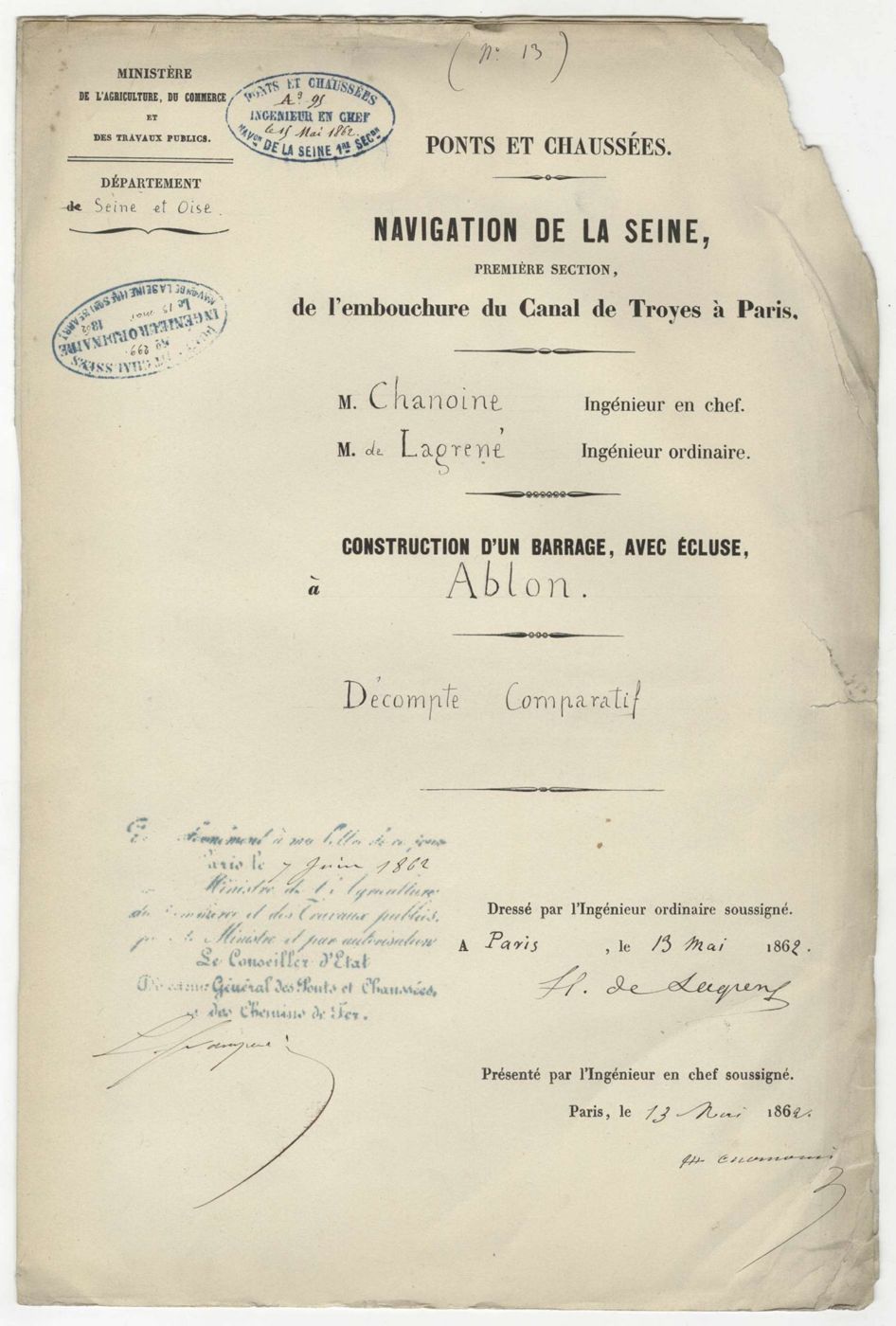 Découvrez, mise en voix, l'extrait d'un rapport sur la construction d'une gare destinée à améliorer la navigation à Villeneuve-Saint-Georges. (Archives départementales du Val-de-Marne, 3S 50).