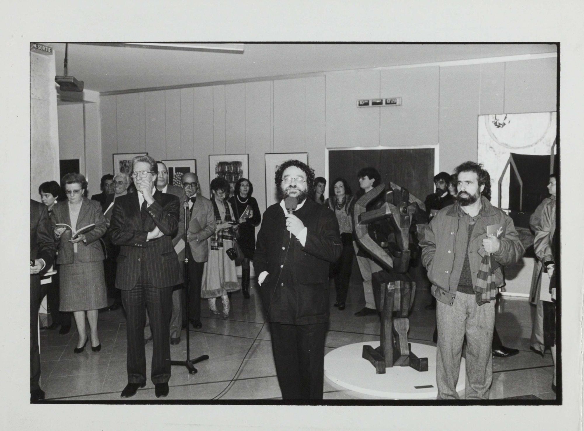 Discours de M. Jean-Raoul Moulin, conseiller culturel (2). Remise de médaille à M. Moulin (1). Discours de M. Moulin (2). Visite de l'exposition (2). Groupes de personnalités (2).